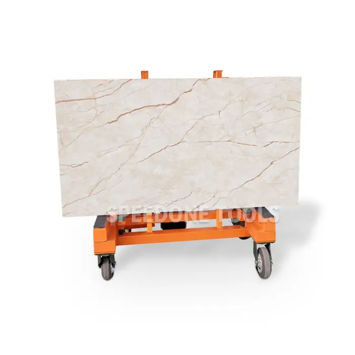 The cart is designed for transporting heavy granite slabs, but it can also be used for other building materials and heavy machinery.