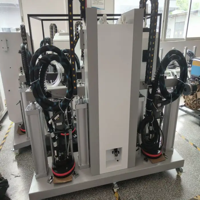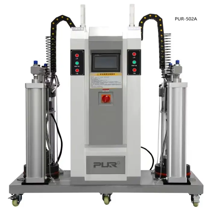Key features include automatic dispensing, a dual-tank design for continuous glue supply, high temperature resistance, and an easy-to-operate control panel.