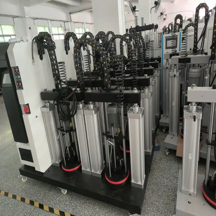 Regular maintenance includes cleaning the glue tanks and ensuring the machine is free from debris to maintain optimal performance.
