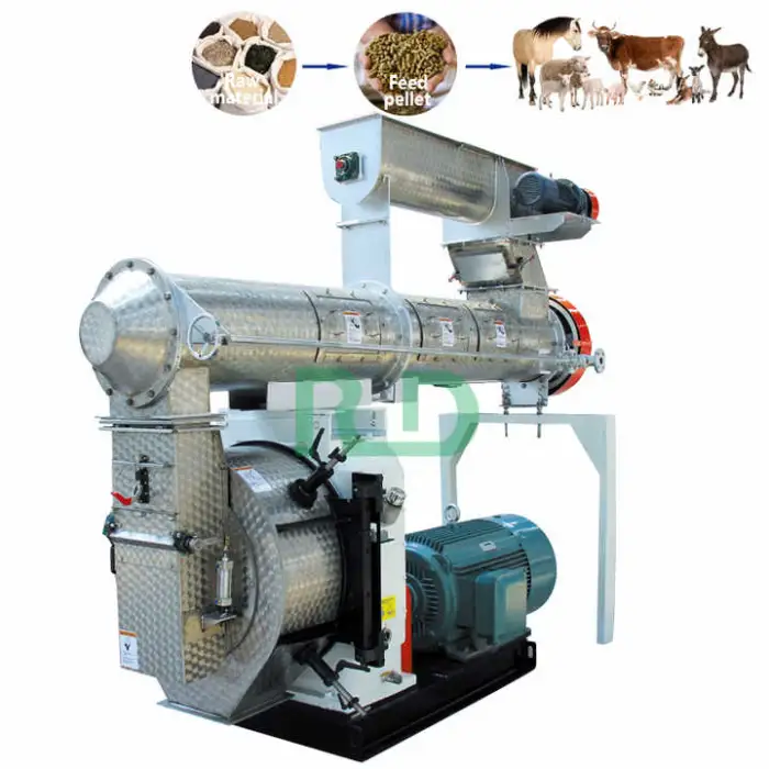 It is a pelletizer designed to produce feed pellets for poultry, cattle and other livestock from raw materials such as corn, soybean, sorghum, grain and grass. It converts powdered or chopped raw materials into uniform pellets for easier feeding, storage and transport.