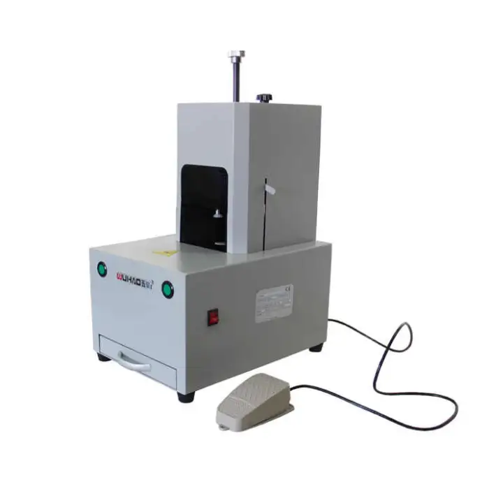 You can operate it using the foot pedal for hands-free cutting or the push button on the control panel for manual operation.