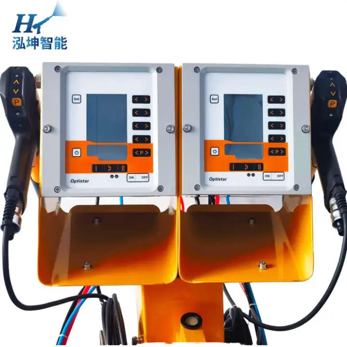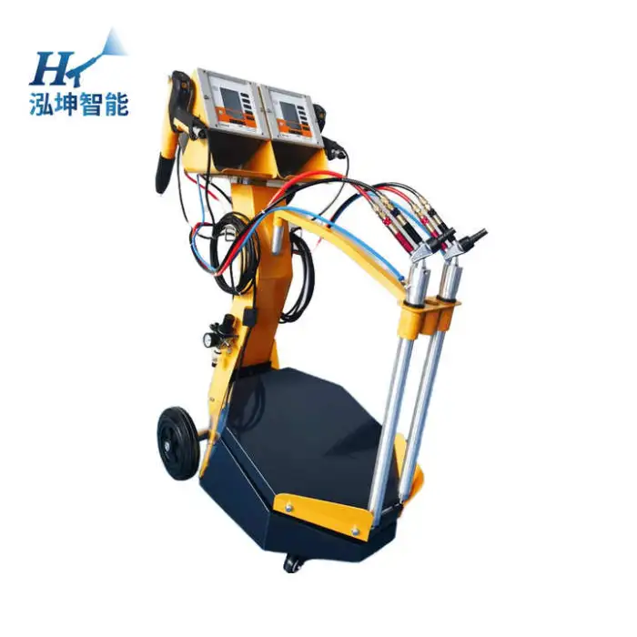 Key features include easy operation, long service life, quick color change capability, lightweight and portable design, and a comprehensive machinery test report.