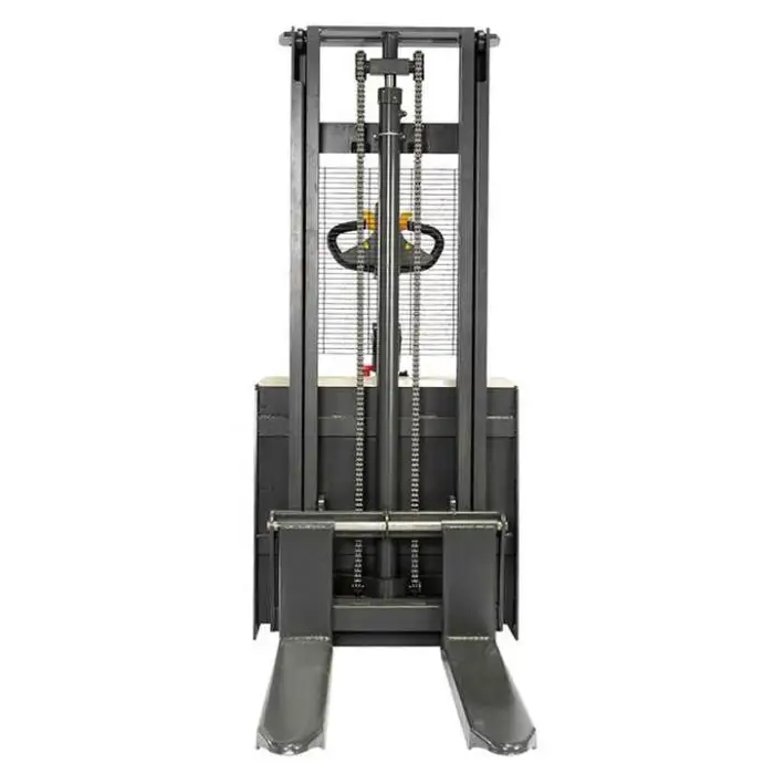 The electric operation of the Empty Container Handler Electric Rider Pallet Stacker provides easy handling, reduced noise levels, and lower emissions compared to traditional gas or diesel-powered models.