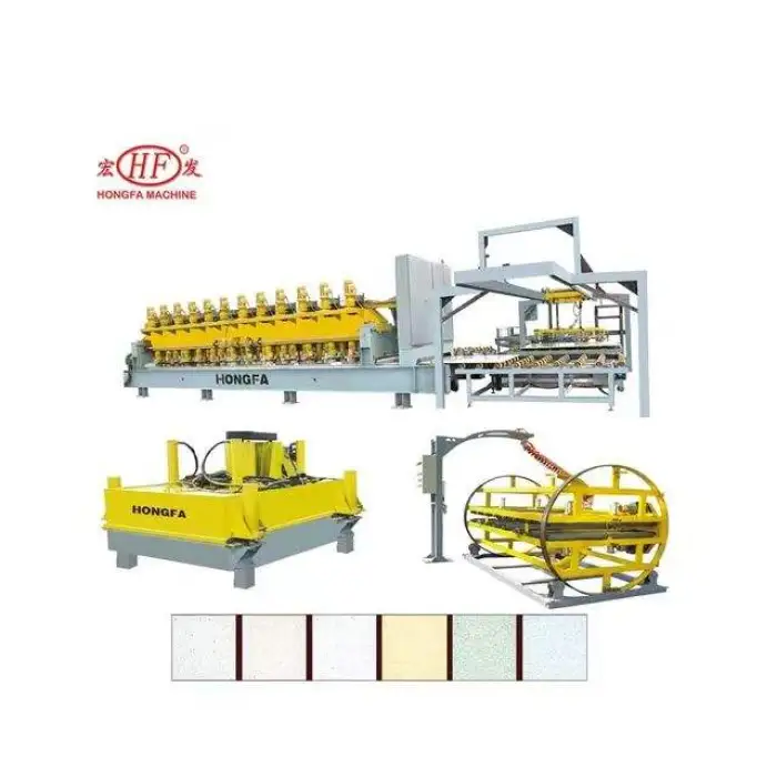 The machine can produce slabs and tiles in various sizes, including 800*3050MM, 1650*3050MM, and 1800*3050MM.