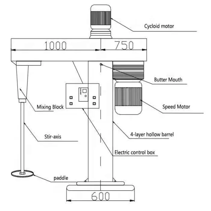 The mixer is suitable for mixing paints and coatings, dispersion of chemicals and plastics, food processing, production of cosmetic products, and preparation of printing inks and resins.