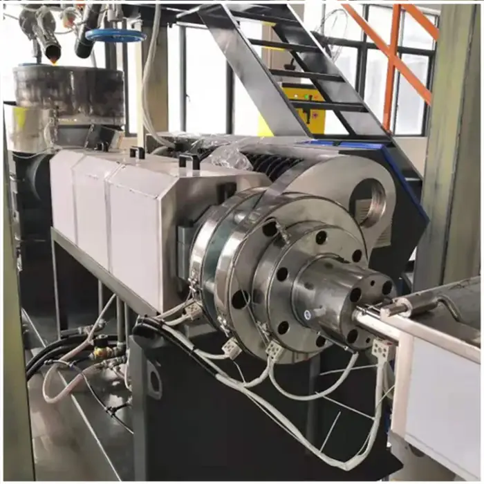 The machine uses a single screw design for processing the EVA material.