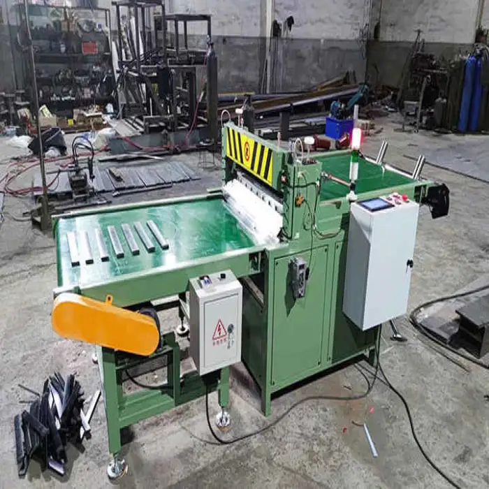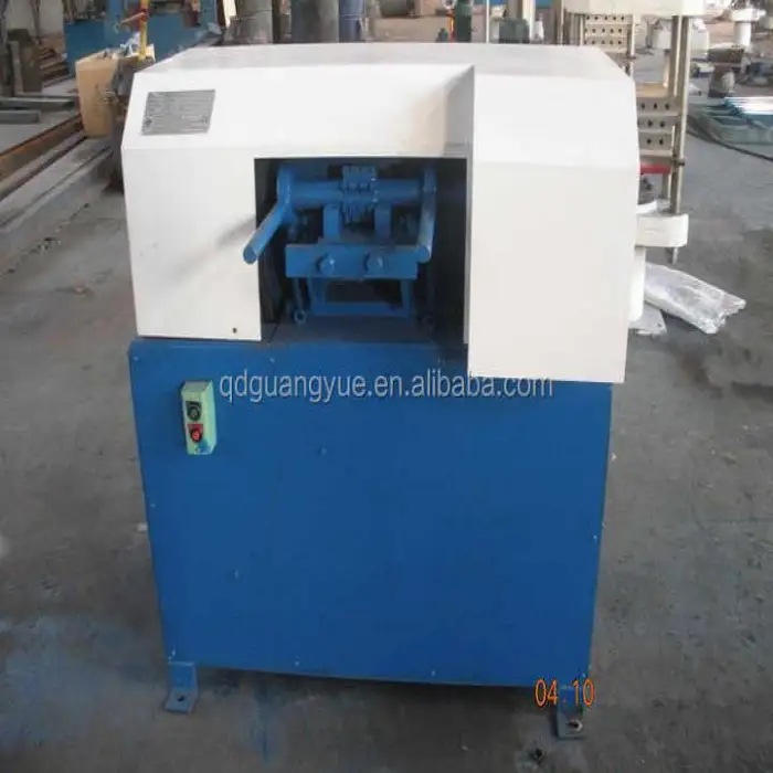 The machine is capable of cutting various materials including rubber, PVC, and polymeric substances.
