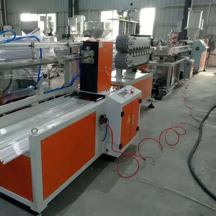 The extruder machinery can process various types of plastics including PVC, PC, FRPP/PVC, and PCTG.