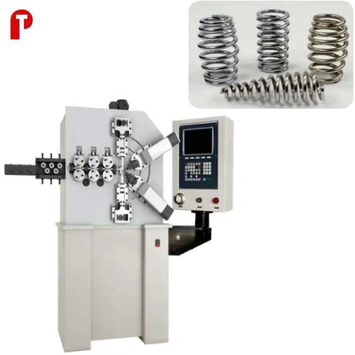 The machine is equipped with a precise PLC control system that ensures accurate spring formation.
