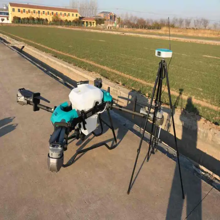 The drone weighs 30 kg, making it sturdy yet manageable for agricultural applications.