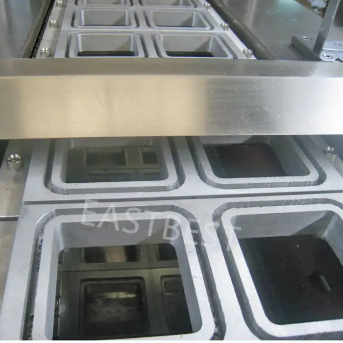 This machine is designed to seal a variety of food trays, including plastic and composite material trays.