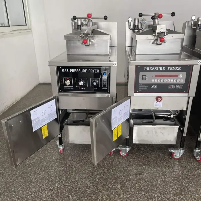 This fryer can operate on both gas and electricity, making it versatile for different kitchen setups.