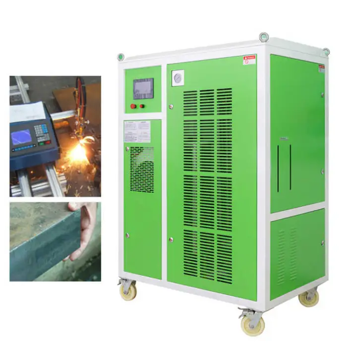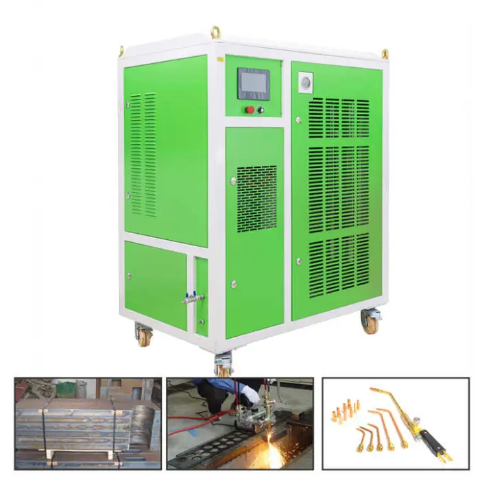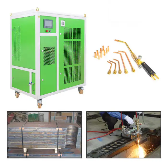 The product description highlights an environmentally friendly and energy-saving design. Oxyhydrogen cutting can reduce some emissions compared with fuel-based cutting, and the electrolytic generation system is designed for efficiency, but overall environmental impact depends on electricity source.