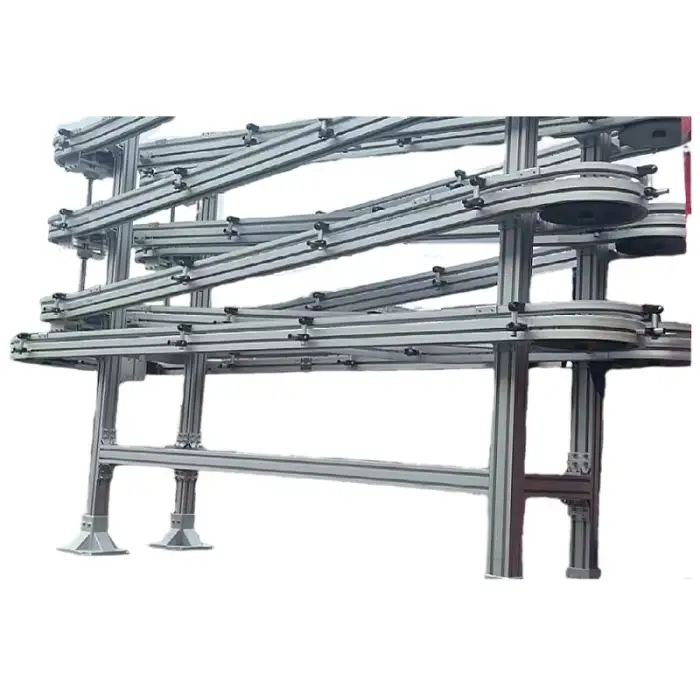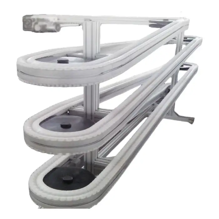 The conveyor is made from high-quality aluminum, 304 stainless steel, and POM, ensuring durability and safety.