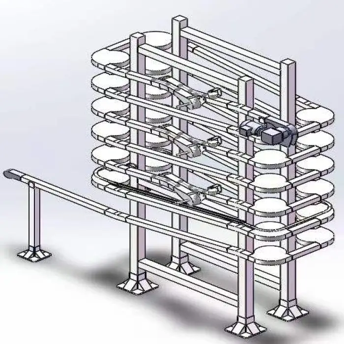 The Flexible Spiral Buffer Conveyor is available in 380 V, 110 V, and 220 V options to suit various electrical systems.
