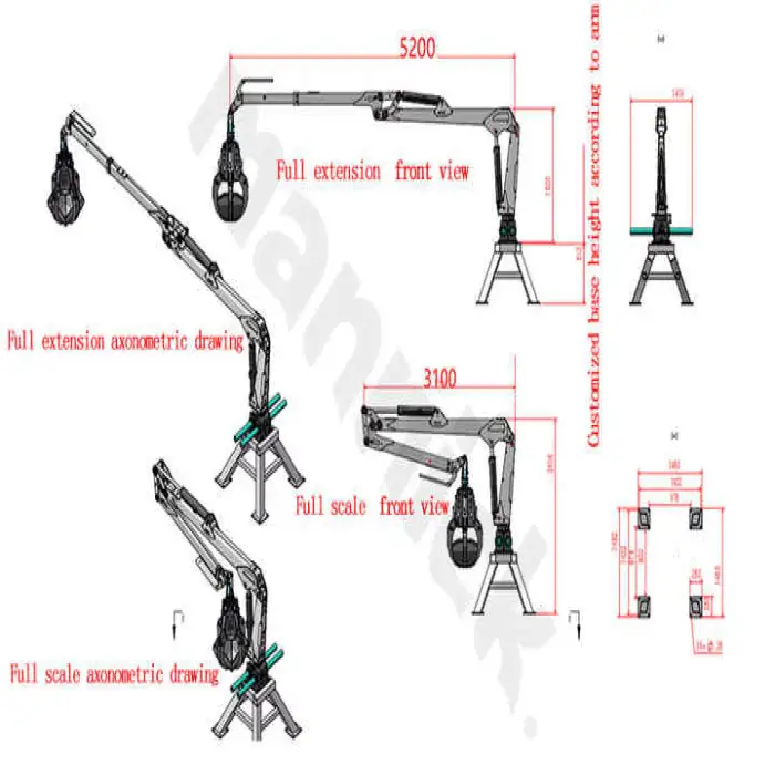 4. What are the dimensions of the Forestry Machine Hydraulic Log Grab Timber Crane?