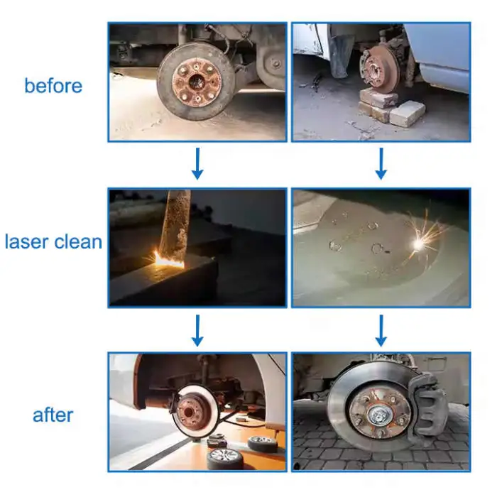 The non-contact cleaning process uses laser technology to effectively remove rust and contaminants without damaging the underlying surface.