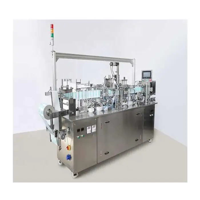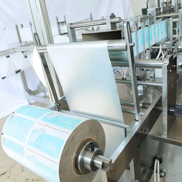 The machine can handle various materials suitable for wet wipes, including non-woven fabrics commonly used in personal care and cleaning applications.