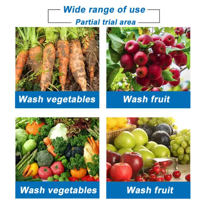 The water bubble washing method is gentle on produce, ensuring effective cleaning without causing damage.