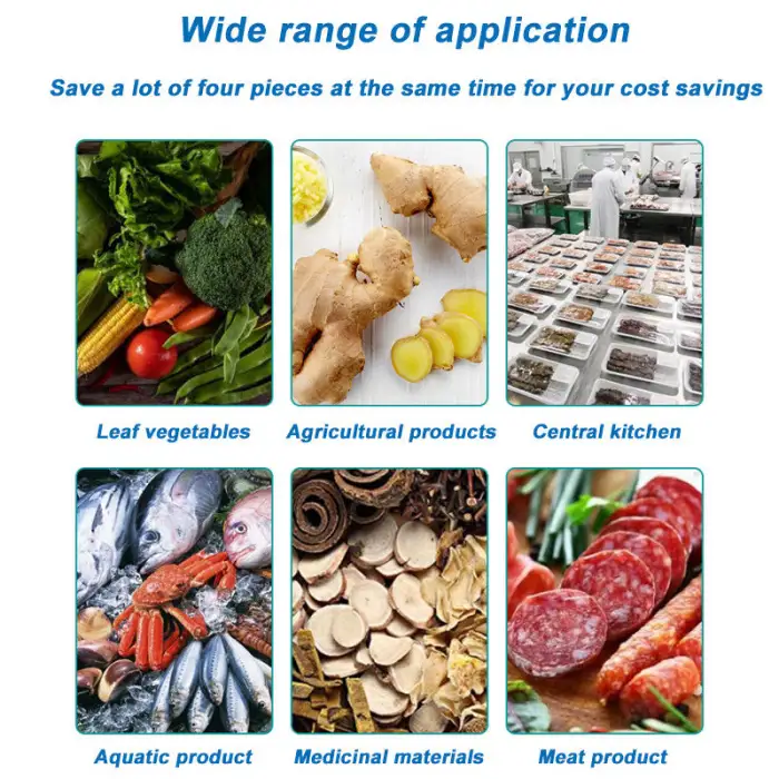 The machine can be utilized in industries such as flour mills, meat processing, fruit and vegetable processing, canneries, and beverage factories.