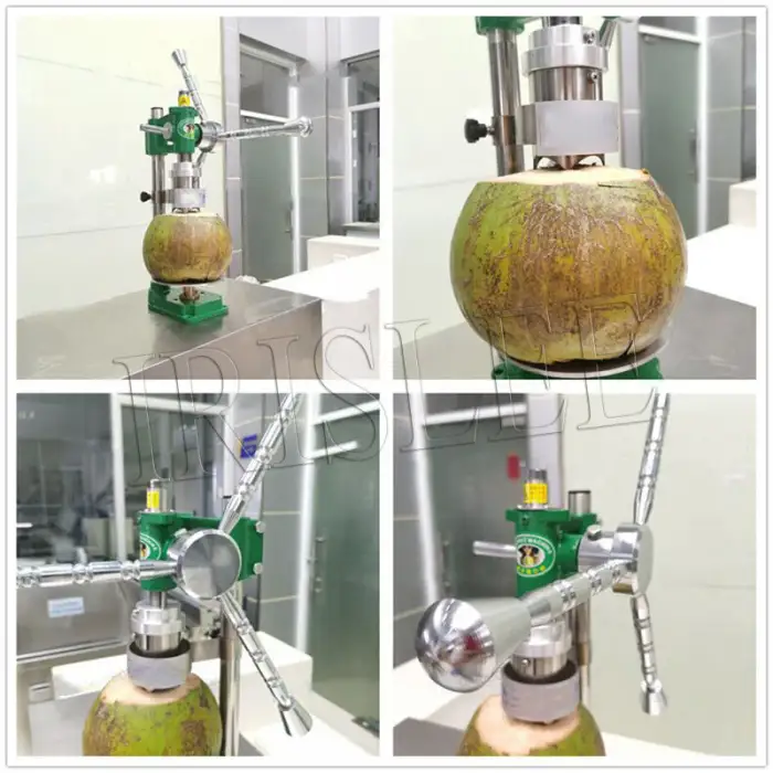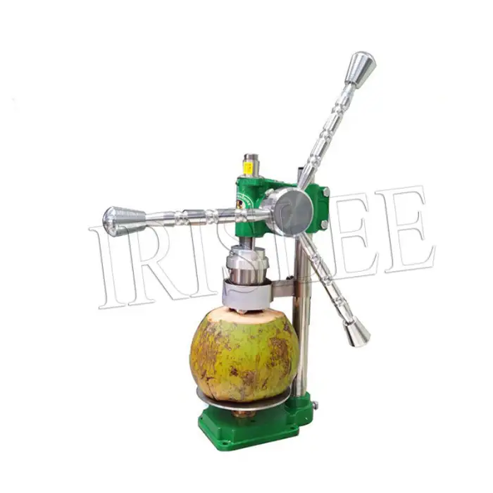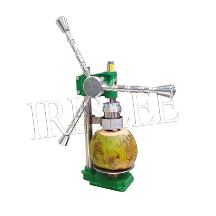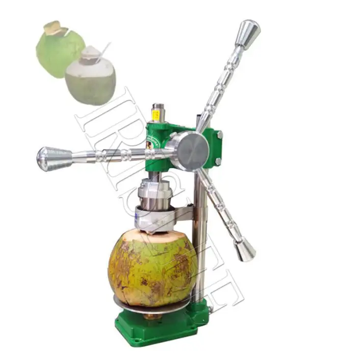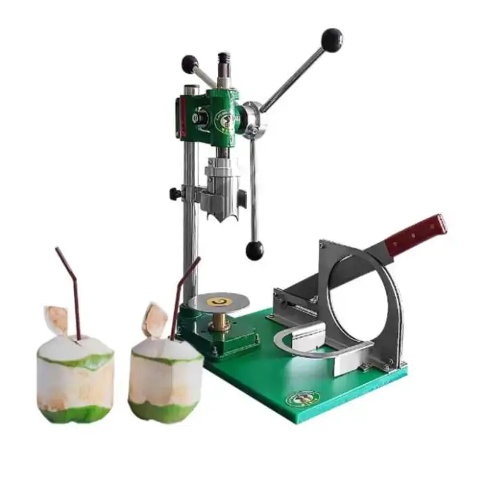 This is a manual punching machine specifically designed for opening fresh green tender coconuts.