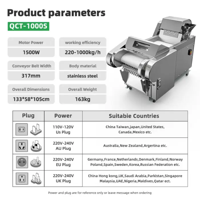 The machine operates at a power of 1500W, ensuring high efficiency while slicing and chopping.