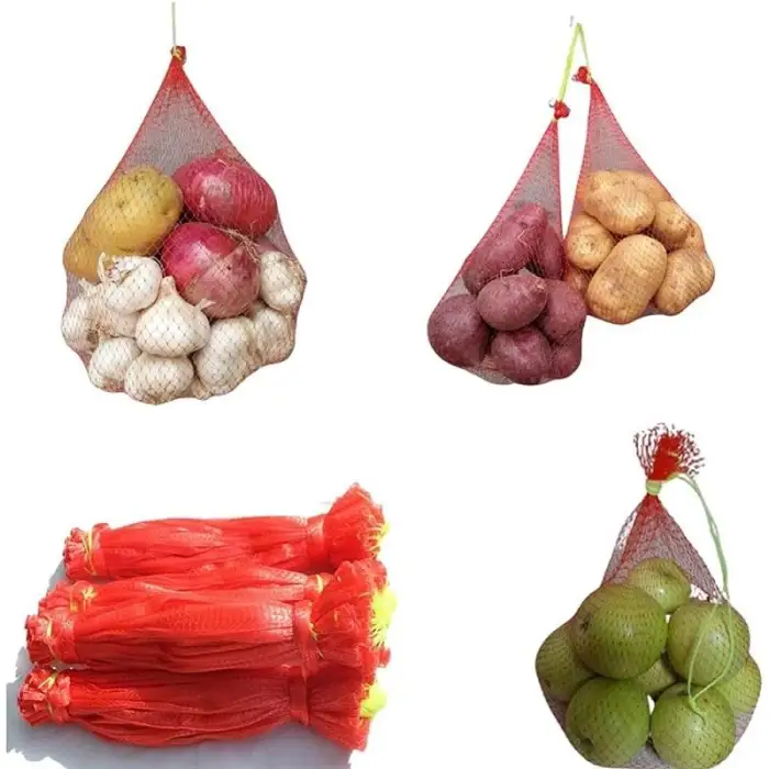 It is designed to pack various fruits and vegetables, including potatoes, onions, garlic, oranges, and other vegetables.