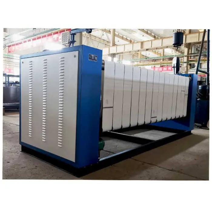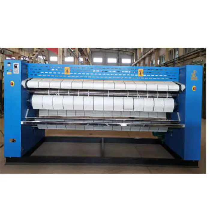 A heavy‑duty, fully automatic ironing and folding machine designed for hotels, hospitals and large laundries to iron and fold bedsheets quickly and consistently using double rollers and electric heating.