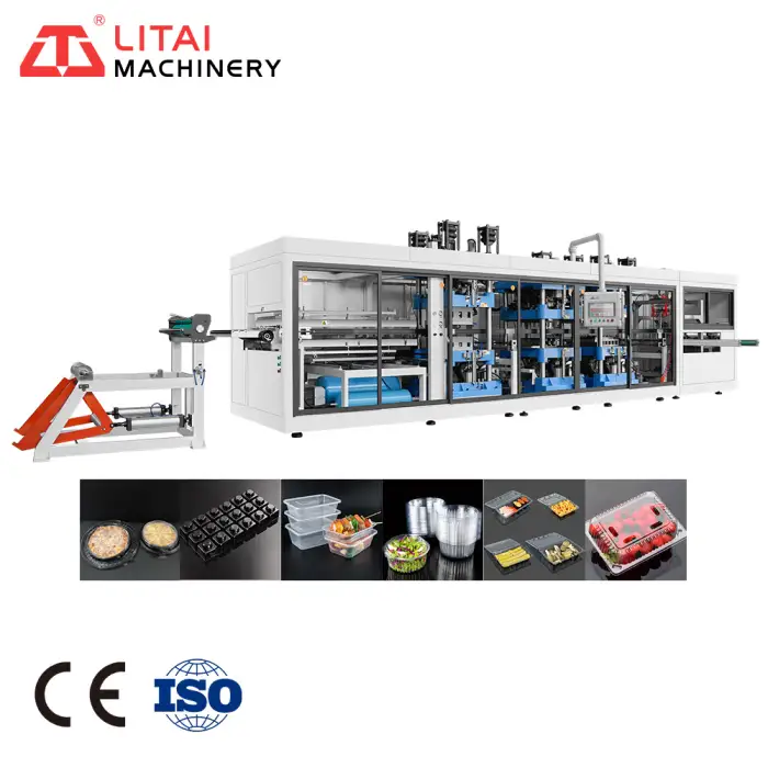 The machine is designed to work with eco-friendly materials such as PP, PS, and PET.