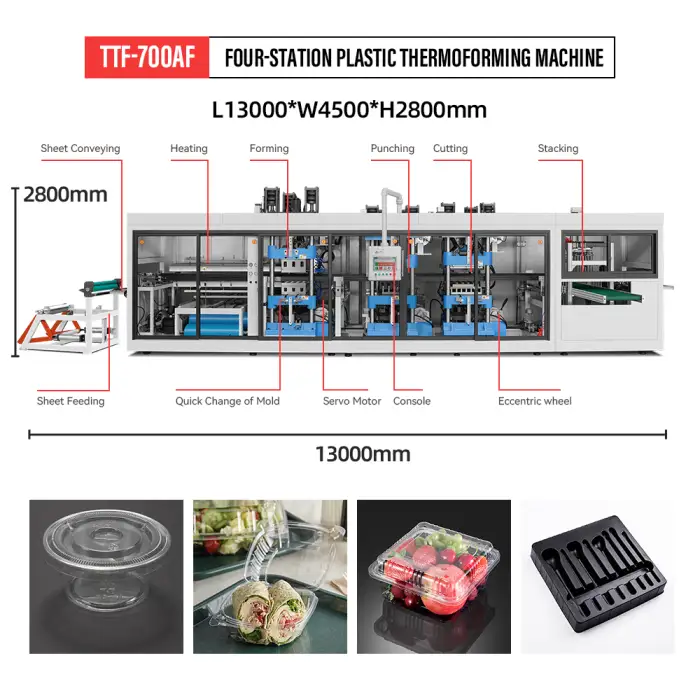 It is suitable for producing egg trays, clamshell containers, lunch boxes for takeout, cup lids for beverages, and trays for cakes and fruits.