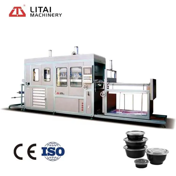 The Full Automatic Vacuum Forming Machine is compatible with various plastic types including PP, PVC, PET, PS, and Hips.