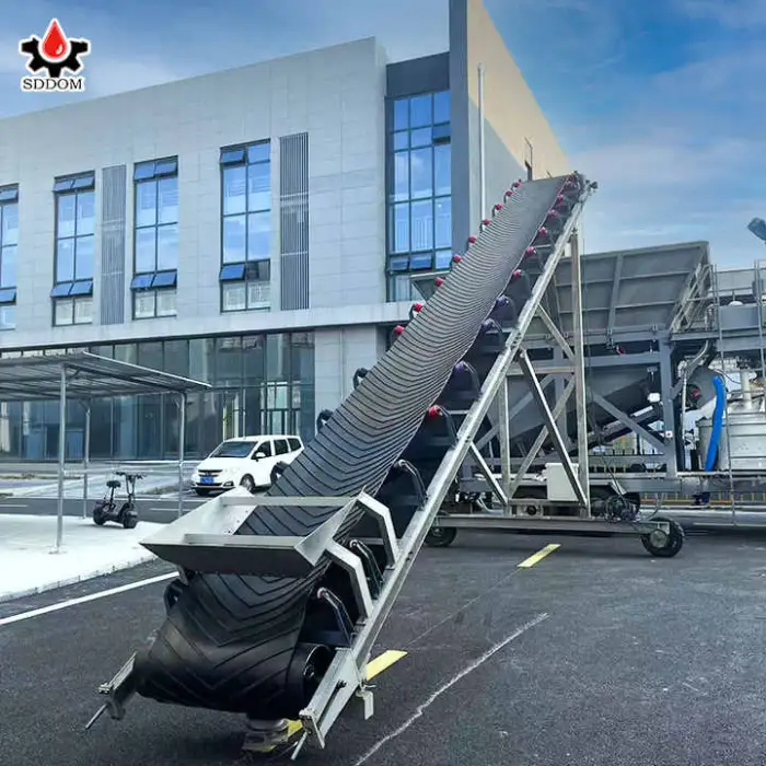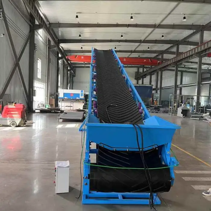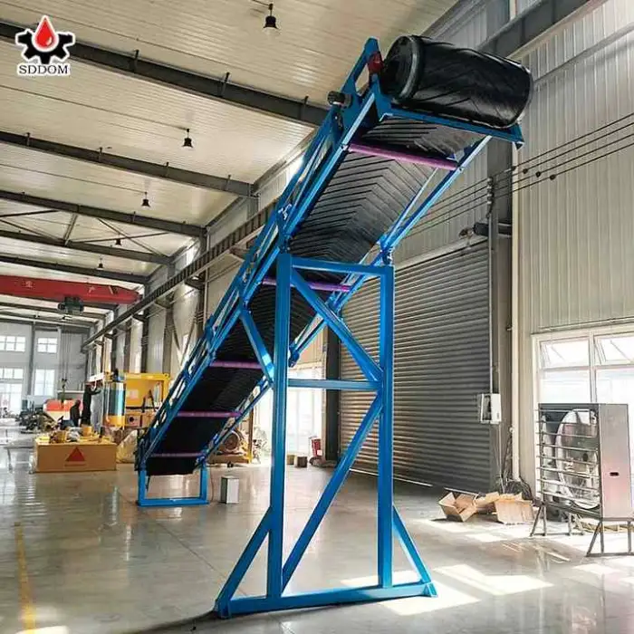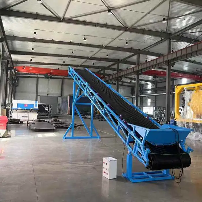 The conveyor belt is made of high-quality rubber, and the structure is built from durable carbon steel.