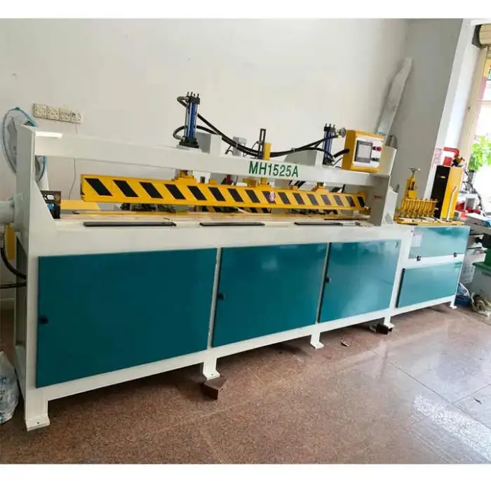 Fully automated means the machine handles material feeding, pressing and joint formation with minimal manual intervention, using preset operating parameters to produce consistent finger joints and improve throughput.