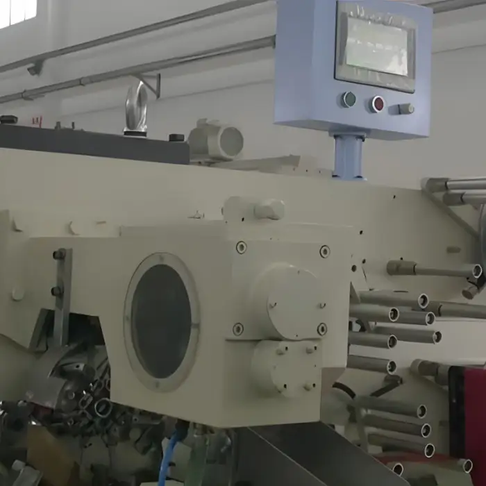 The machine features an automatic feeding system that streamlines the packaging process, reducing the need for manual handling and increasing efficiency.