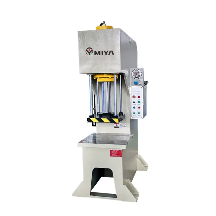 Key features include fully automatic operation, a powerful hydraulic system, ease of use with online support, compact design, and high precision in metal stamping and assembly.