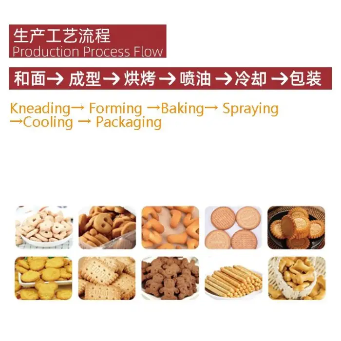 The machine is primarily used for biscuit production in snack food factories, but it can also be used for pet food manufacturing and creating snacks for fish, shrimp, and poultry.