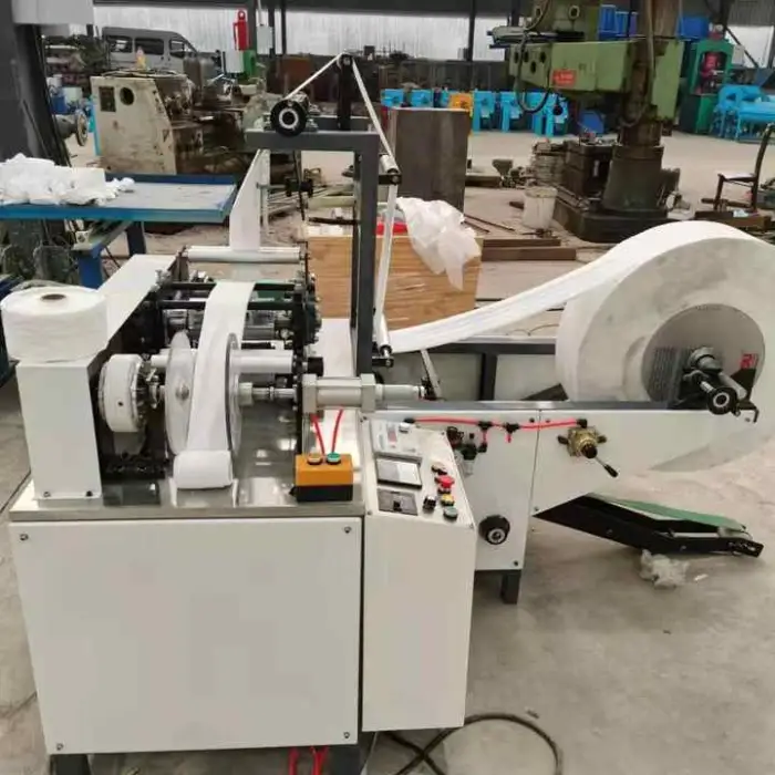 The machine can produce up to 200 face towels per minute, making it highly efficient for large-scale production.