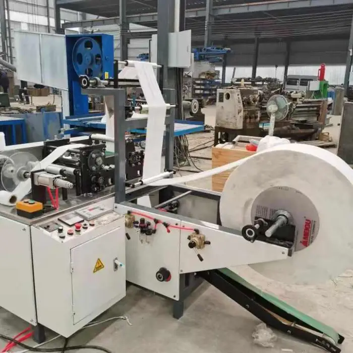 The Fully Automatic Cotton Facial Towel Making Sewing Machine operates on a voltage of 380V.