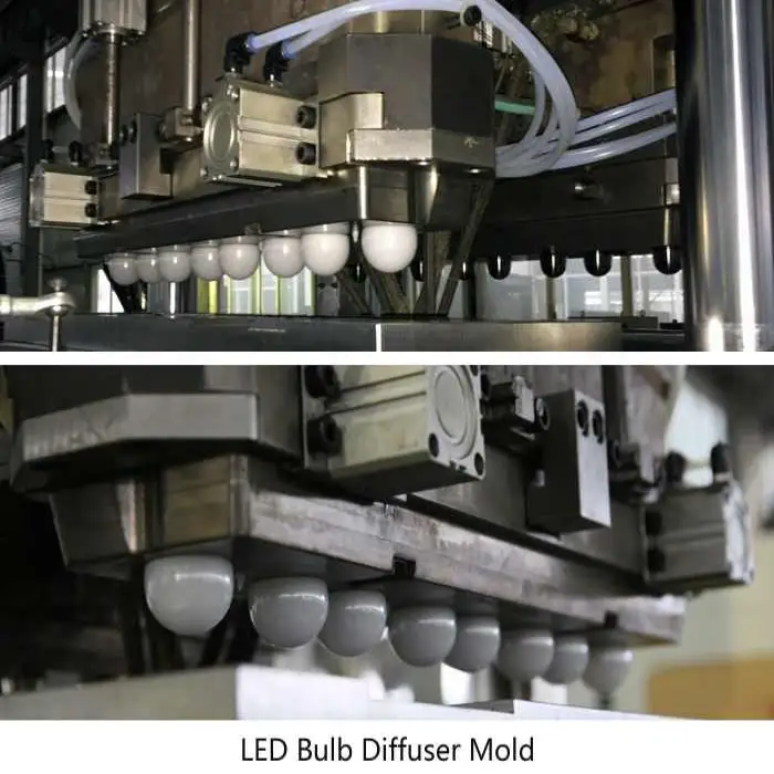 The Fully Automatic LED Bulb Cover Manufacturing Machine can process PC and PS/AS plastic materials.