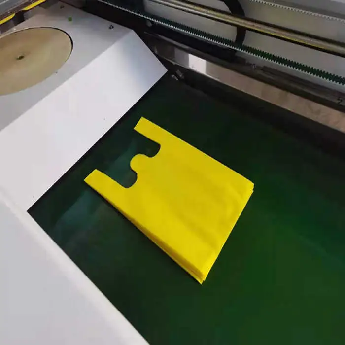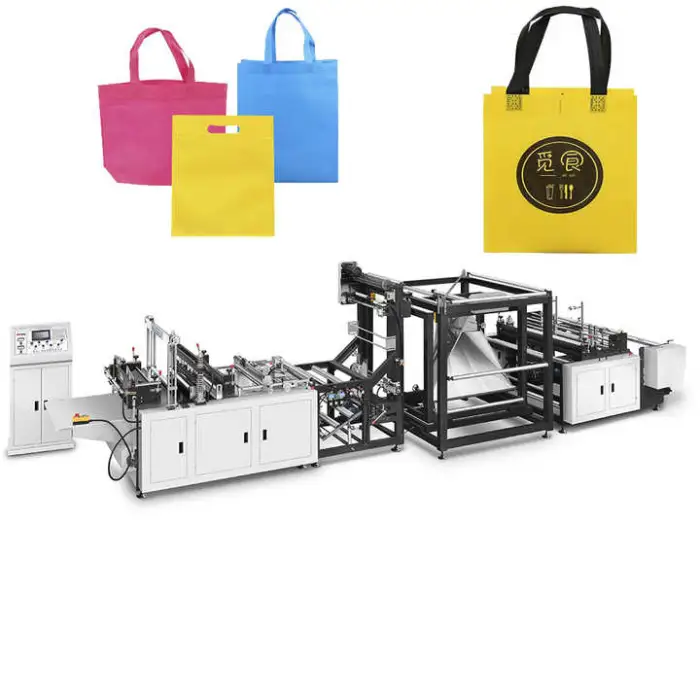 The machine automatically produces non-woven shopping bags at high speed and is designed for businesses in the packaging, retail, grocery and promotional industries that need reliable, high-volume bag production.