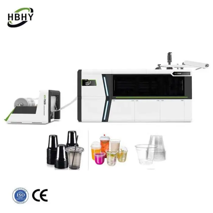 The machine is compatible with HIPS, PVC, PS, PP, BOPP, EPS and PET, allowing flexible production of different disposable plastic cup types.
