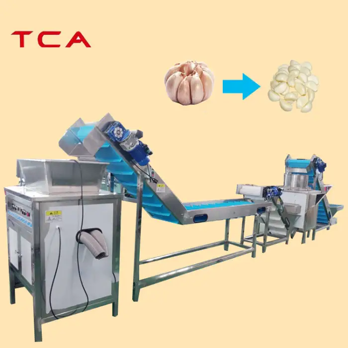 The machine efficiently breaks and peels garlic automatically, allowing for a quick and consistent peeling process.