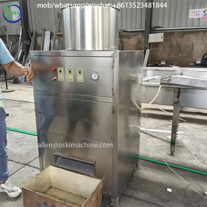 The Garlic Peeling Machine has a capacity of 200-300 kg of garlic per hour.