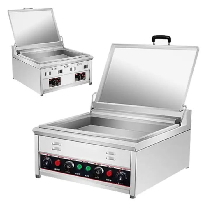The Gas Electric Japan Fried Gyoza Cooker can use both gas and electric heat sources, offering versatility for different cooking environments.