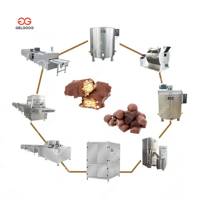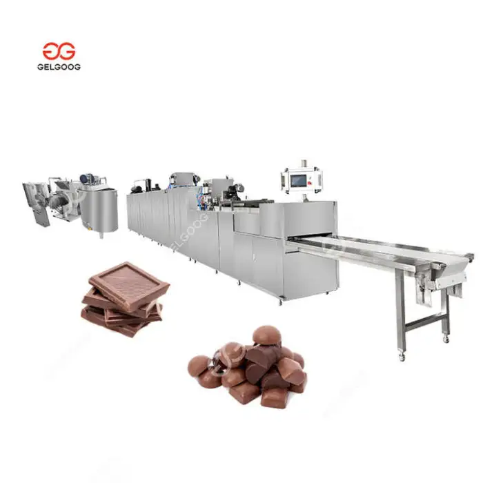 An advanced, largely automatic chocolate making production line designed to produce filled chocolates, nut chocolates, and chocolate spreads. It integrates moulding and filling functions in a stainless-steel construction for use in snack factories, bakeries, and confectionery manufacturers.