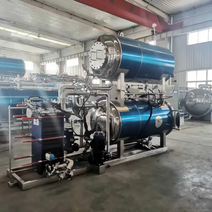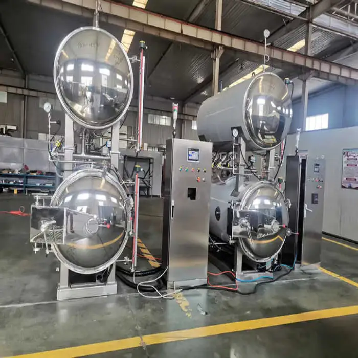 The Glass Jars Tin Can Retort Sterilizer is an industrial steam autoclave designed to sterilize packaged food in glass jars and tin cans, eliminating harmful bacteria to extend shelf life and ensure safety.