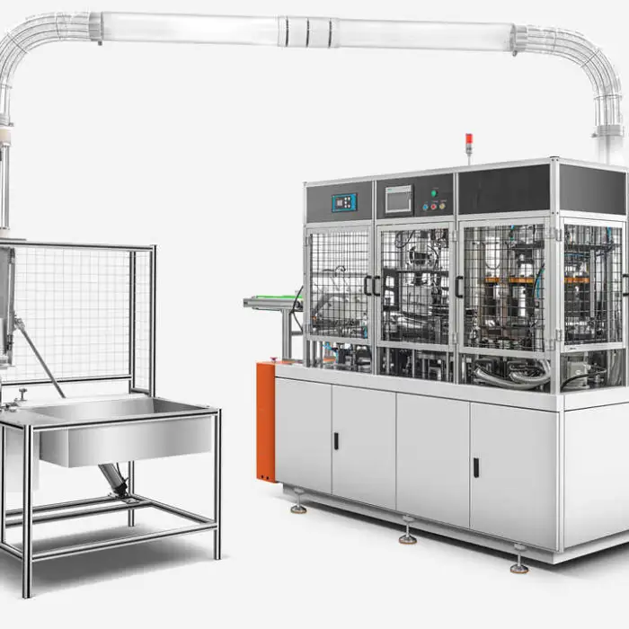 It produces disposable paper bowls suitable for salads, take-away meals and other food packaging using PE-coated paper. The machine is designed for high-speed, fully automatic bowl forming.