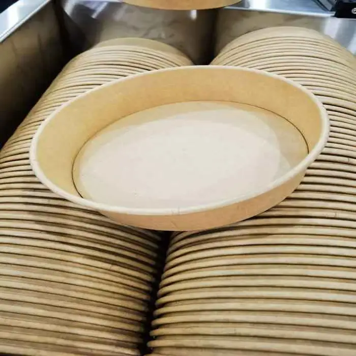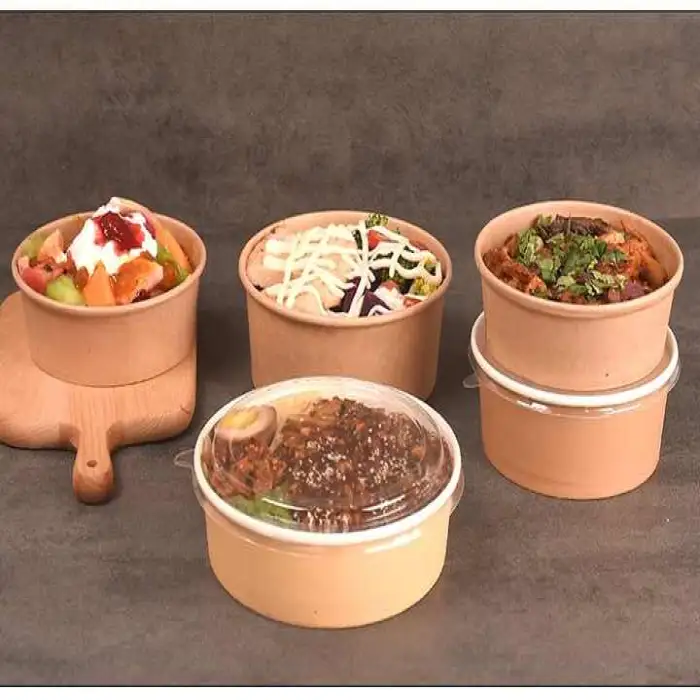 Bowls are made from PE-coated paper, which provides oil and water resistance. PE coating can affect recyclability and compostability; local recycling and industrial composting capabilities vary. Ask the supplier about alternative coatings (PLA, water-based) if compostability is a priority.