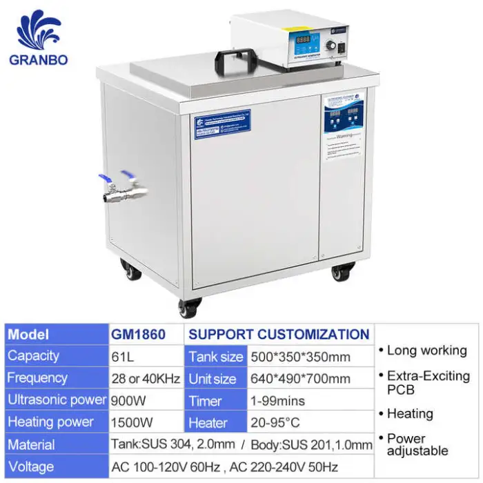 Granbosonic 61L Industrial Ultrasonic Cleaner Jewelry Bowling Golf Ball Sonic Cleaner Machine