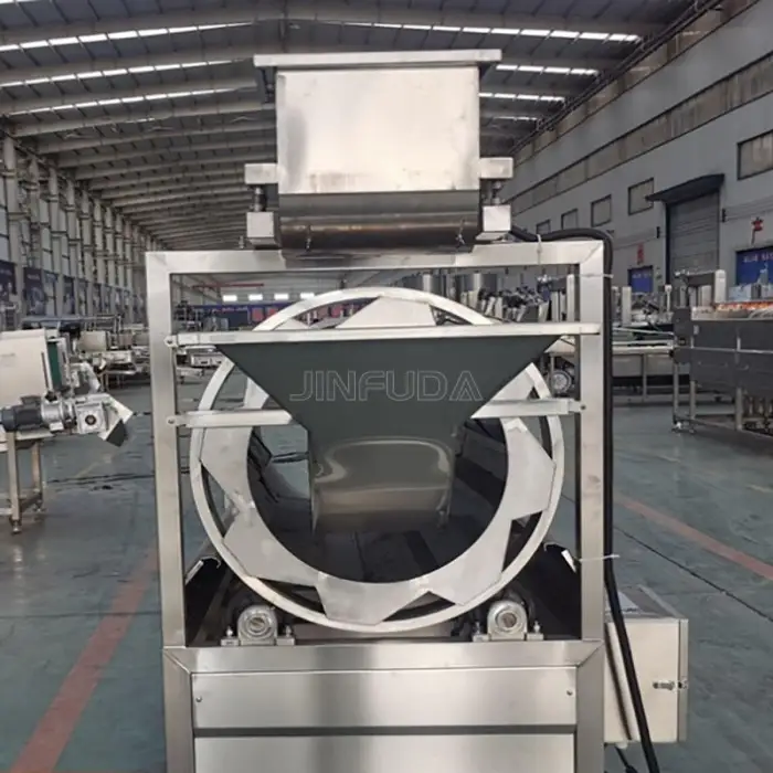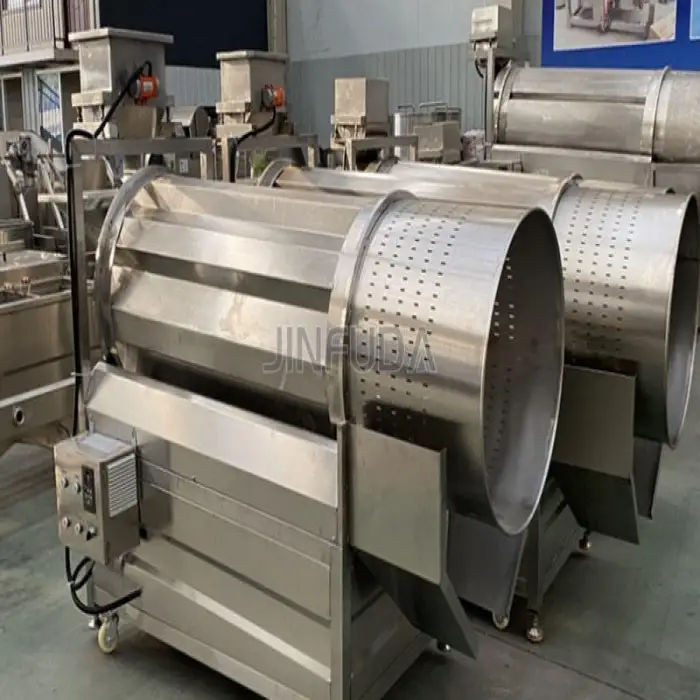 This machine is primarily designed for seasoning popcorn chicken, but it can also enhance the flavor of various snacks in food processing, such as nuts and other fried products.